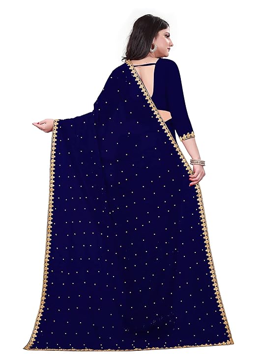 Women Saree (Embellished Bollywood Chhifon Saree-Navy Blue)